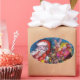 ADESIVO OVAL SANTA CLAUS COM PRESENTES