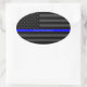 Adesivo Oval Seu texto Linha Azul fina Linha Negra Sinalizador
