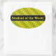 Este design de adesivo apresenta símbolos de sinal verde em dólar dentro de faixas amarelas e símbolos de sinal amarelo ($) em faixas verdes. Poderia fazer um presente de excelente para alguém que trabalha no setor financeiro (como um contabilista, ou um investidor, ou no setor bancário), ou talvez para alguém que está interessado em colecionar notas e moedas monetárias. Também apresenta a mensagem "Estudante da Semana!" em texto amarelo dentro de uma banda de cor escura. Talvez pudesse ser usado por um professor, educador ou orientador para reconhecer e elogiar um estudante que teve uma semana muito boa. [~Z0000052]