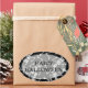 Esqueletos sobre fundo negro e HELLOWEEN FELIZ em letras divertidas, esses adesivos ovais são divertidos para sua festa de Halloween e para colocar favoritos para festas. CORRESPONDENDO a itens na nossa loja.