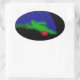 Imagem neon verde de um esquiador de água do slalom arredondando uma boia vermelha e chutando uma parede de spray azul tudo em um fundo preto.