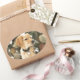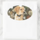 recuperador de ouro amarelo giro tocando na neve contra parede de pedra de campo com maria