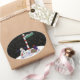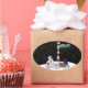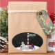 O boneco de neve está vestido com luvas e botões azuis. O boneco de neve está ao lado de um polo branco e vermelho com uma placa verde que diz "Polo Norte". Os presentes estão ao lado do polo. A neve branca está deitada no chão. Os autocolantes estão disponíveis com um fundo branco ou preto.