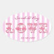 Vinheta AMOR listrada, rosa e branca. Excelente para favores de casamento ou etiquetas de buffet e adesivos. O LOVE é impresso numa fonte de vintagem romântica que lembra o circo ou o ocidente