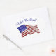 "Mostre seu orgulho pelos EUA com este "United We Stand!" Design de sinalizador. Esta design apresenta uma bandeira ondulando os Estados Unidos e as palavras "Unidos, somos!" em texto azul."