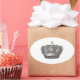 Esta incrível coroa escura e branca é tão excelente em toda sua correspondência de casamento e chá de panela, adesivos de envelope, cartas de agradecimento e presentes de noiva! Nós também o temos em travesseiros, cobrir de iPhone, e plástico de presentes. Perfeito para o príncipe ou mesmo para o rei na sua vida!
