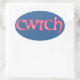 Envie um 'cwtch' galês para seus entes queridos! Uma folha de adesivos ovais com a palavra galesa 'cwtch', que significa 'abraço' ou 'abraço' num script celta, preenchidos com um padrão de Gingham de Verificação Vermelha e Branca num fundo de Azul Profundo que você pode mudar se desejar.