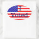 O popular adesivo de forma oval ou selo com a bandeira da América em estrelas vermelhas, brancas e azuis e listras com texto "Eu Votei" em letras azuis corajosas correspondentes. O texto pode ser facilmente alterado para quaisquer palavras personalizadas. Excelente para eleições ou outros eventos patrióticos especiais ao longo do ano! Mostre o seu orgulho e não se esqueça de votar nas grandes eleições presidenciais políticas que se avizinham em novembro e em quaisquer eleições que se aproximem.