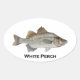 Uma ilustração de cor branca de perca completa este adesivo de pesca. A perca branca é capturada durante todo o ano a partir de lagos, rios, rios, riachos e estuários das marés águas frescas. Em algumas zonas, as suas zonas de inverno e de desova precoce são uma tradição anual. Estes deliciosos pântanos são frequentemente servidos em fritas de peixe, refeições familiares e outras celebrações. O perch branco é relacionado a baixo listrado e baixo branco.