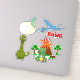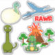 Uma folha de 6 adesivos claros, constituídos por um Dino que eclode de um ovo; um dinossauro verde bebê olhando para você, um dinossauro azul voador e um Dino adorável para jogos sentado em frente a um vulcão ilha que está erupindo ao fundo. São ideais para meninos que amam seus jogos e a fantasia de uma civilização de séculos atrás.