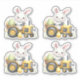 Uma folha de 4 coelhos amarelos conduzindo um trator amarelo arrastando ovos de Páscoa para adicionar aos seus filhos pacotes de presentes de Páscoa