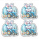 Uma folha de 4 coelhos azuis conduzindo um trator azul arrastando ovos de Páscoa para adicionar aos seus filhos pacotes de presentes de Páscoa