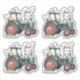 Uma folha de 4 coelhos verdes conduzindo um trator verde arrastando ovos de Páscoa para adicionar aos seus filhos pacotes de presentes de Páscoa