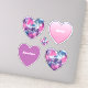 Este padrão de tinta alcoólica tem espirais macios de roxo, rosa, azul e preto, que dá ao design um enfumaçado uma aparência misteriosa. Também lembra o corante de gravata. Conjunto de quatro corações e um pequeno diamante. Os corações podem ser personalizados com um nome. O pequeno diamante pode ser personalizado com iniciais. Se você não quiser texto em adesivos, basta apagá-lo. As folhas pequenas (4" x 4") ou médias (6" x 6") são boas para laptop ou comprimidos e garrafas de água. Você pode querer aumentar o tamanho ou dois para decalques de carro e etiquetas de bagagem. Para obter mais ideias sobre como aplicar seus adesivos, leia "Sobre este Produto" abaixo. Este adesivo inclui um coração cor-de-rosa, um coração de lavanda, dois corações com padrão de tinta a álcool púrpura, rosa, preto e azul, e um pequeno diamante.
