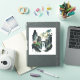 Um belo adesivo de vinilo mostrando uma ilustração tinteiro de uma paisagem com a antiga arquitetura chinesa e majestosas cachoeiras.