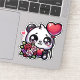 Este adesivo apresenta um adorável panda com grandes olhos cintilantes, segurando um buquê de rosas vibrantes e um balão em forma de coração. Suas bochechas azuis e sua doce expressão irradiam calor e amor, fazer-o o símbolo perfeito para afeto, romance e gentileza. Ideal para compartilhar em ocasiões especiais como Dia de os namorados ou simplesmente espalhar alegria e amor!