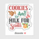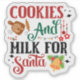 Um adesivo quadrado vibrante celebrando a mágica do Natal com cores alegres. Decorada com ícones festivos, incentiva a encantadora tradição de deixar biscoitos e leite para Papais noeis, criando uma atmosfera quente de férias.