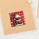 Em um pano de fundo festivo, vermelho, enfeitado com flocos de neve e sotaques de feriado, Papai Noel balança um clube de golfe com brilho.