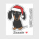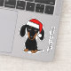 Vestido de Natal Dachshund Sticker. Cachorro preto e branco vestindo um chapéu de Papai Noel. Este vinil é resistente à água, excelente para laptop, garrafas de água, janelas de carros e muito mais.