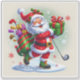 Em meio a uma maravilhosa terra de inverno, Papais noeis alegremente carregar um belo presente embrulhado em uma mão e um vibrante cheio de tacos de golfe na outra.