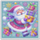 Um Papai Noel alegre vestido de violeta vibrante abraça uma pilha de presentes coloridos, irradiando espírito festivo. Cercado por flocos de neve e ornamentos de férias, ele traz um senso de alegria e celebração perfeito para a época de Natal.