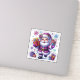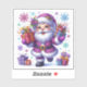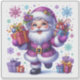 Um Papai noel alegre em uma roupa violeta vibrante carregar alegremente presentes coloridos cercados por decorações festivas. Flocos de neve e ornamentos flutuam no ar, criando uma agradável atmosfera de feriado perfeita para comemorações de Natal.