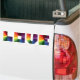 Um autocolante no vidro traseiro que inclui todas as cores do arco-íris. AMOR TODOS!