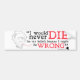" Eu nunca morreria para minhas opiniões porque eu pude ser" ~ errado Bertrand Russell. Embora não um céptico ele mesmo, Russell escreveu muito sobre se nós podemos saber qualquer coisa com certeza. Anuncie sua própria vontade de duvidar o dogma a qualquer um que monta seu pára-choque com este autocolante no vidro traseiro!
