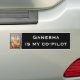 Um autocolante no vidro traseiro que caracteriza uma imagem de Ganesha com as palavras "Ganesha é meu copiloto".