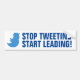 O trunfo suga o autocolante no vidro traseiro: "PARE A CONDUÇÃO TWEETING DO COMEÇO"