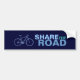 Uma bicicleta azul com o texto "SHARE THE ROAD"