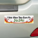 Odeio quando isso acontece! Chamas, peixe sorridente e texto.