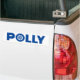 O nome Polly com a letra O como roda. Para um carro/bicicleta fanático, mecânico ou condutor.