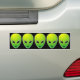 Cinco aliens verdes gostam de ervilhas em um vagem.
