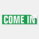 Come in we are open door window sign vinyl sticker. Personalizable template text and color. Green and white. Handy public warning signage with big letters for hospitality business, company, club, shop, office building, restaurant, hotel etc. Custom danger, caution and attention notice for main entrance or exit.