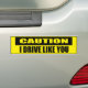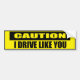 Um adesivo de precaução com o texto "Caution I Drive Like You".