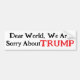Dear World, we are sorry about TRUMP. Black and red text on a white background.
