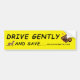 " CONDUZA DELICADAMENTE E SALVAR…" no bkgrnd amarelo com cão feliz + mamífero pequeno