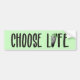 Texto "Escolher a Vida" com pegada de bebê recém-nascido e arco verde e branco de bolinhas em fundo verde. A cor de fundo pode ser alterada.
