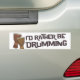 Este autocolante no vidro traseiro engraçado para bateristas lê-me "preferencialmente estaria rufando" e caracteriza uma ilustração de dois cilindros ajustados corda do djembe.