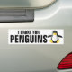 Autocolante no vidro traseiro branco engraçado com "EU TRAVO PARA OS PINGUINS" escritos no texto preto em duas linhas. Com uma imagem um pinguim adorável dos desenhos animados.