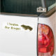 Este autocolante no vidro traseiro lê, "mim trava para sapos!" e caracteriza uma imagem bastante simples de um sapo.