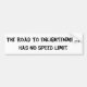 Funny Buddhist joke bumper sticker says The road to enlightenment has no speed limit. Please drive with caution en route to nirvana.