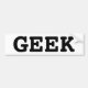 Um autocolante no vidro traseiro liso do "geek" com um fundo branco e um texto preto.