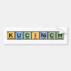 O nome Kucinich é soletrado usando elementos da mesa periódica. Mostre seu apoio ao congressista de Ohio Dennis Kucinich com este design original inspirado em química. O design é apresentado em elementos da mesa periódica: Potássio + Urânio + Carbono + Iodo + Níquel + Carbono + Hidrogênio = KUCINiCH