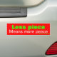 Bumper stickers com uma mensagem Menos peça significa mais slogan de paz escrito por ralph w staples para palavras de wisden http://zazzle.com/writepeople