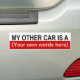 Meu outro carro é uma Nota: Você pode mudar a cor de fundo da área personalizável de vermelho para qualquer cor que desejar. Basta clicar no botão "Personalizar!" acima, clicar na pequena seta ao lado de "Editar", selecionar "Fundo" na lista suspensa e escolher a cor preferida na grade de cores. Você também pode alterar o tipo de fonte, o tamanho e/ou a cor para suas especificações clicando na área de texto [Suas próprias palavras aqui] em "Personalizar!".