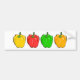 Ilustração colorida de um grupo de quatro pimentas de sino coloridas diferentes que estão ordenadamente em uma linha. Imagem disponível em vários presentes e produtos.