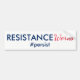 Os trabalhos de resistência persistem no adesivo vermelho branco e azul para-choques. Texto: Resistência Funciona #persiste texto azul e vermelho sobre fundo branco. A resistência continua, com cada ação e cada protesto.