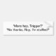 Autocolante no vidro traseiro com o "" das citações mais feno, disparador?" "Nenhuns obrigados, Roy, eu sou enchido! ""